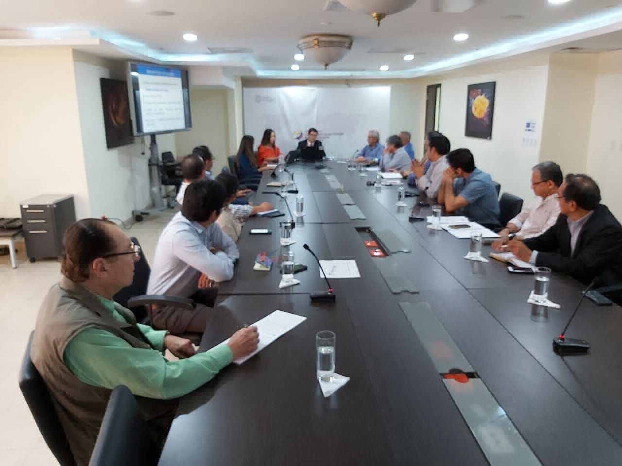 Los directivos de CORPCOM Juan Pablo Zúñiga, Daniel Alarcón, Javier Chon y Tulio Reyes se informaron sobre las ventajas y desventajas de pertenecer a la Alianza del Pacífico en una exposición realizada por José Duran Lima consultor de la Comisión Económica para América Latina y el Caribe, CEPAL.