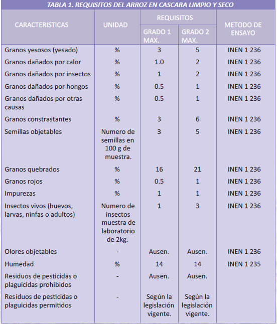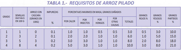 Las normas INEN para arroz estan vigente desde el año 1986 cuando una comisión conformada por profesionales agrícolas del Ministerio Agricultura y de la empresa privada, de la que formó parte el Ingeniero Tulio Reyes, actual Gerente de Industria Arrocerera INDUREY, tomó como referencia la norma internacional vigente para aquella época adaptándola a las calidades de arroz producido para el mercado ecuatoriano.